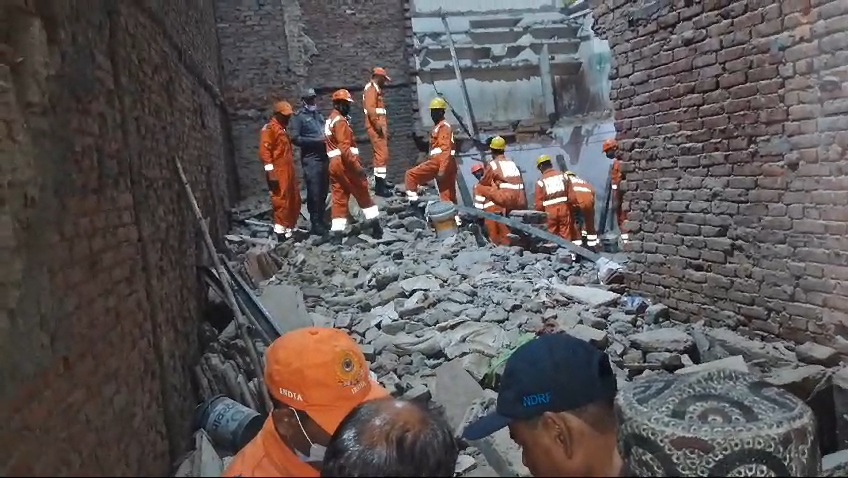 वेलकम थाना क्षेत्र के कबीर नगर में एक बिल्डिंग गिरी दो की मौत एक घायल